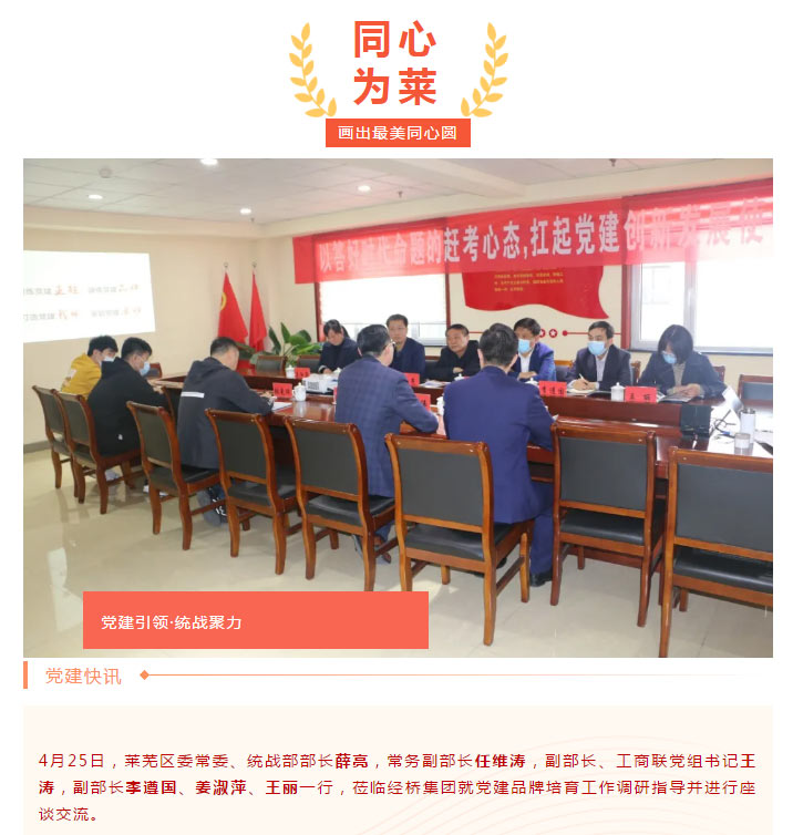 同心為萊:區(qū)委統(tǒng)戰(zhàn)部一行蒞臨集團(tuán)調(diào)研指導(dǎo)黨建工作!